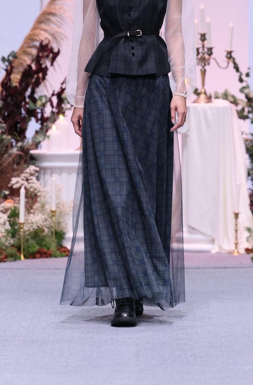 Check Pattern Long Skirt